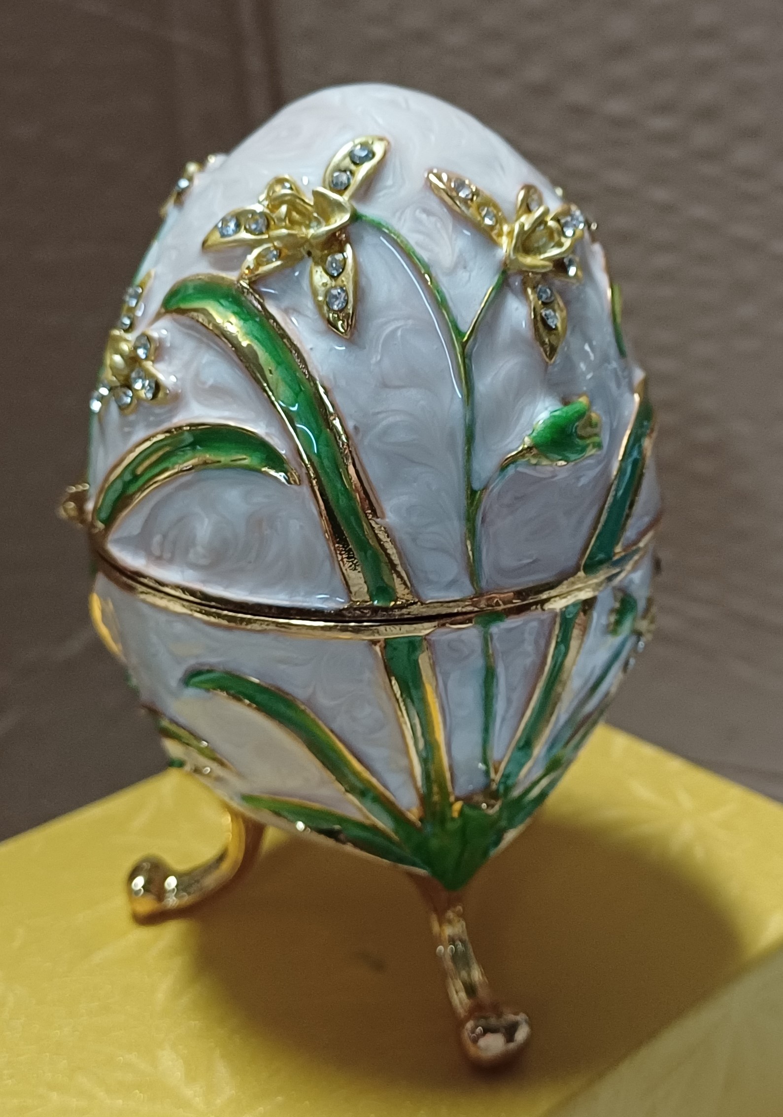 1589 × 2266 Θήκη φύλαξης Πασχαλινού Αυγού μεταλλικό με σμάλτο και ζιρκόνια.
