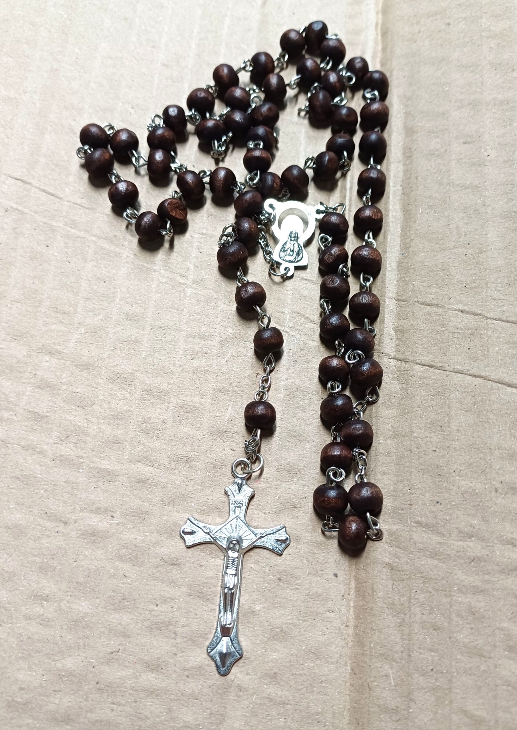 1812 × 2560 Κολιέ Ροζάριο με ξύλινες χάντρες καφέ σκούρο