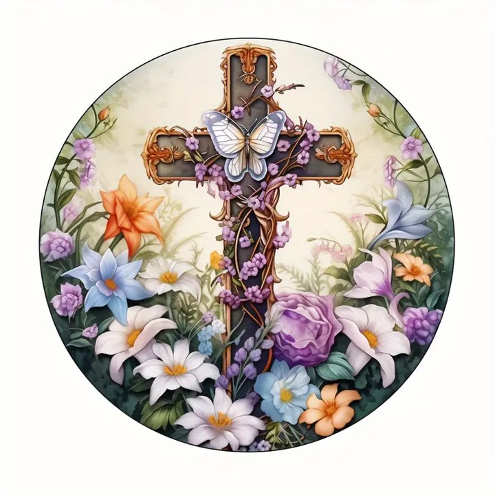 720 × 720 Αυτοκόλλητο Αυτοκίνητου Σταυρό με λουλούδια