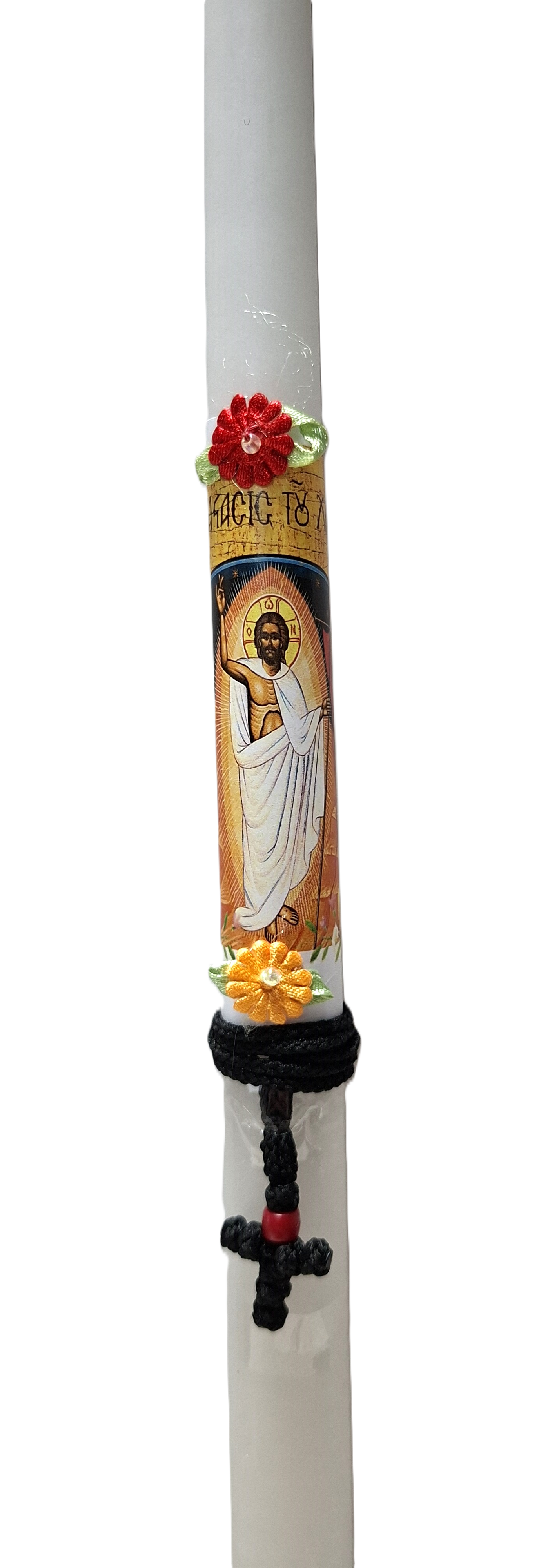 1426 × 4000 Λαμπάδα άσπρη με πλεκτό σταυρό (κόκκινη χάντρα)