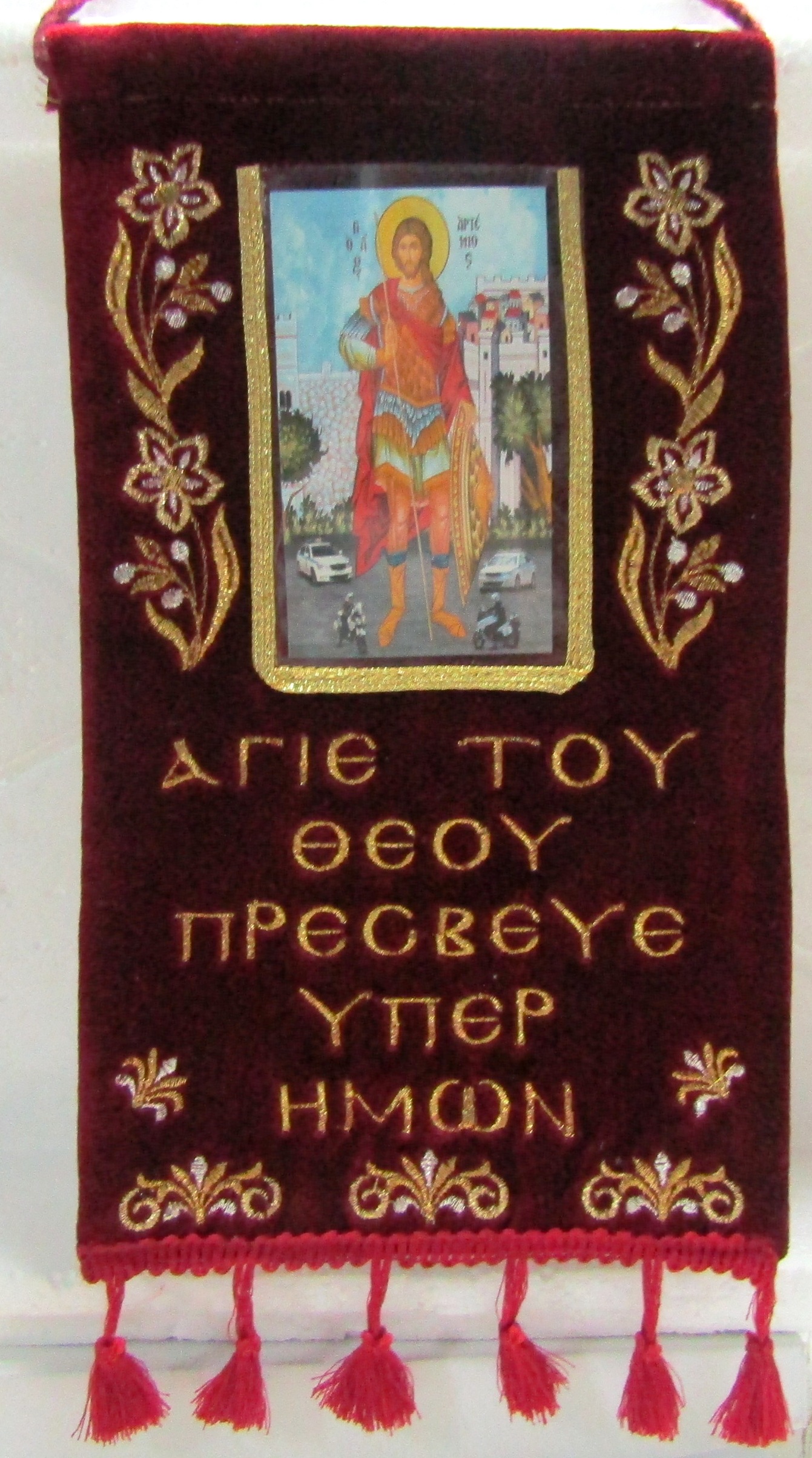 Χρυσοκέντητο σε βελούδο με την ευχή και εικόνα τον