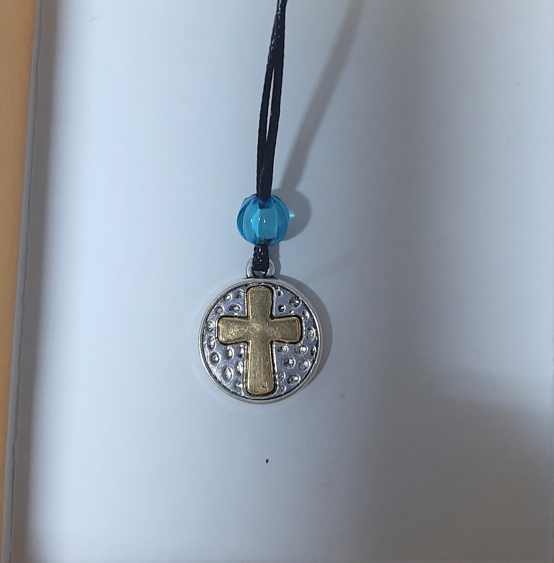 σε χρώμα ασημί – χρυσό σταυρό με κορδόνι