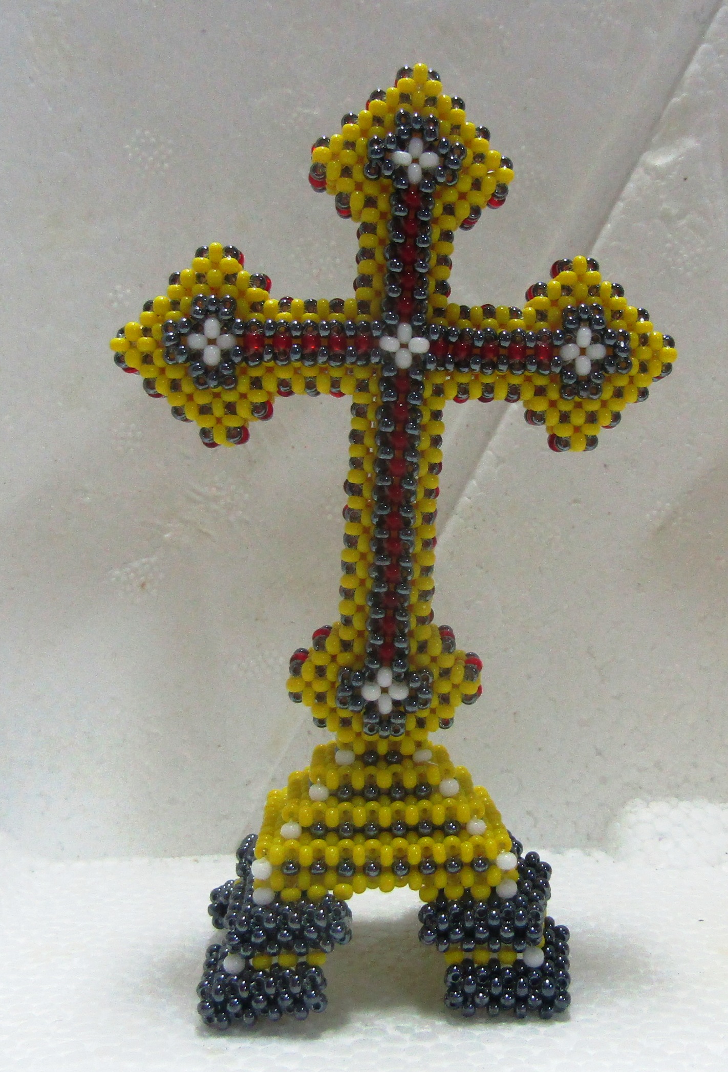 Σταυρός 3D Πολυτελείας χειροποίητος με βάση φιλοτεχνημένο με πολύ ψιλές χάντρες.