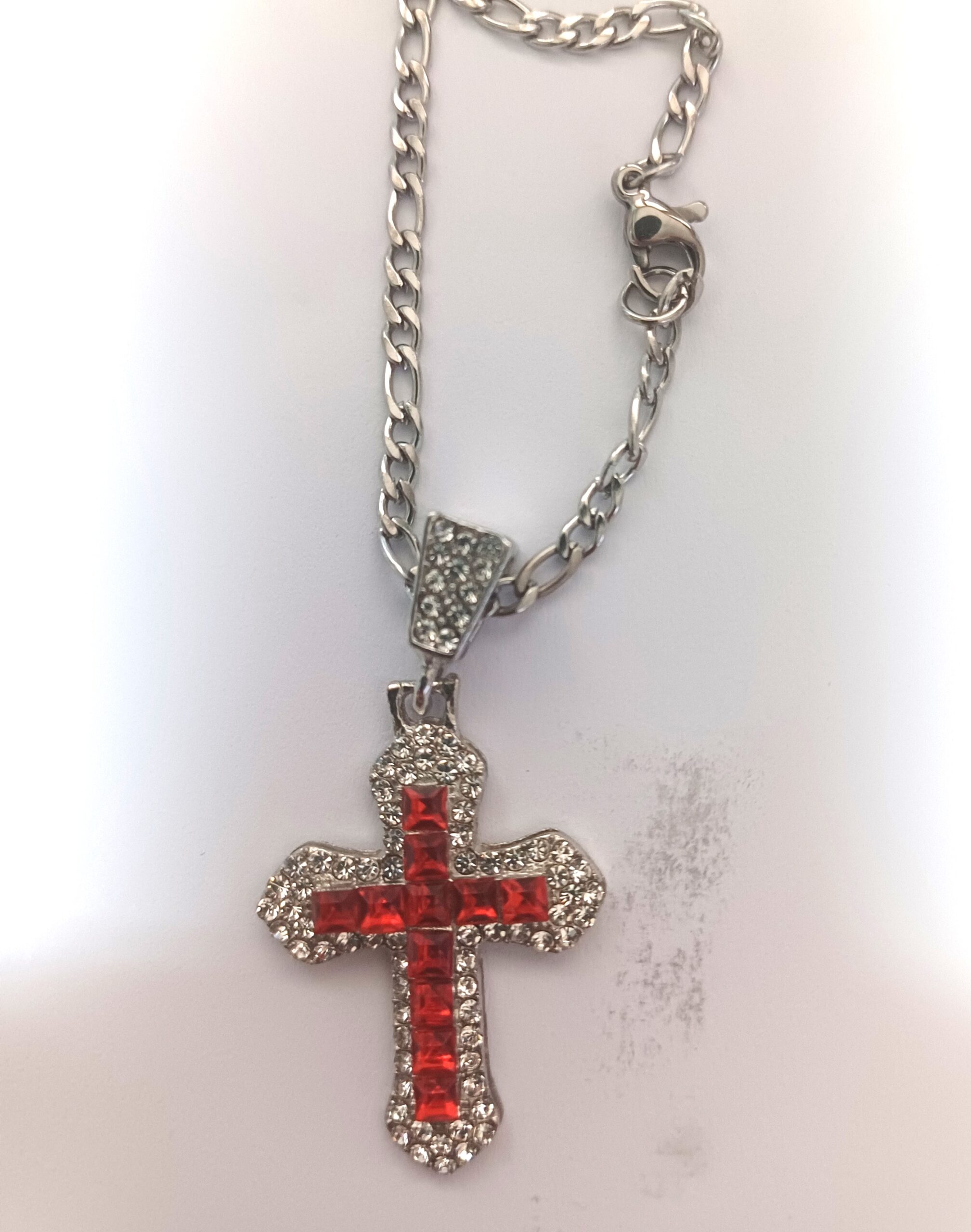 Σταυρό Ανοξείδωτο με Ζιρκόνια Κόκκινα και Λευκά