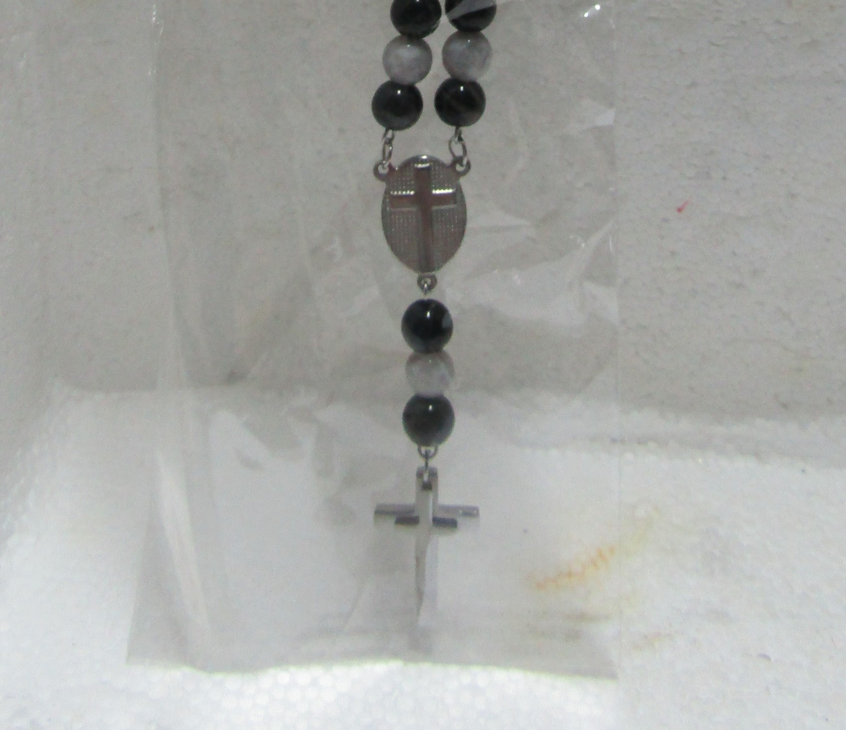 Κολιέ Ροζάριο με φυσικά πετρώματα και Ανοξείδωτο Σταυρό