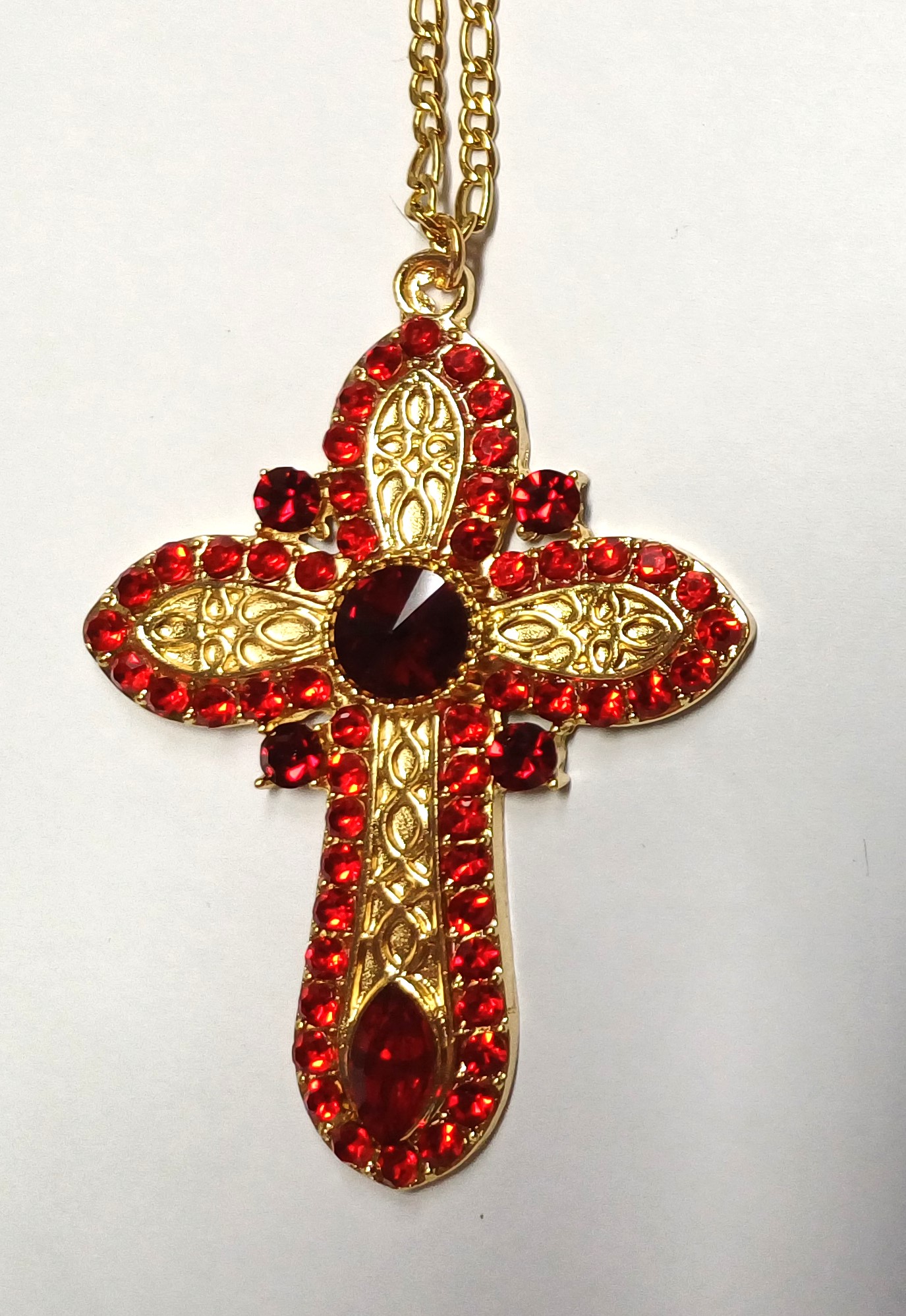 Σταυρός ανοξείδωτος μεγάλος με πέτρες κόκκινες