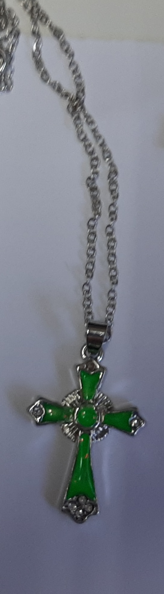 Σταυρός μεταλλικός ασημί με πράσινο σμάλτο