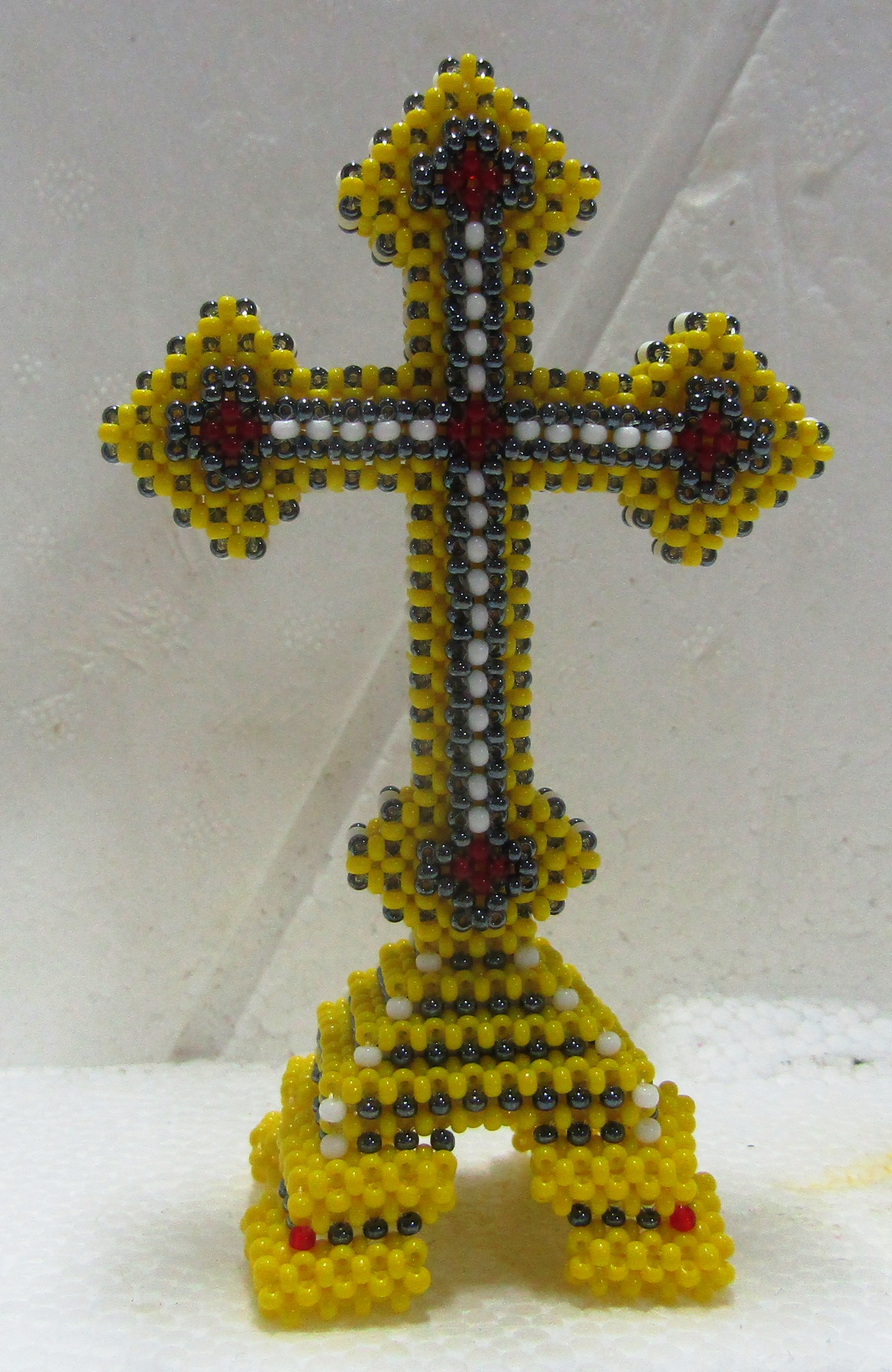 Σταυρός 3D Πολυτελείας χειροποίητος με βάση φιλοτεχνημένο με πολύ ψιλές χάντρες.