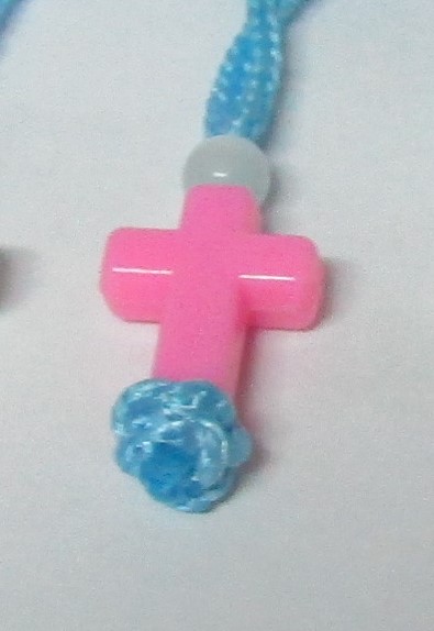 με κορδόνι γαλάζιο – ροζ Σταυρό – λευκή χάντρα