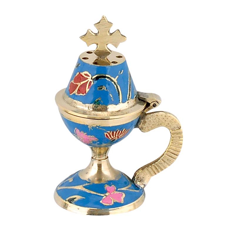 Μικρό μπρούτζινο οικιακό θυμιατό με επίστρωση σμάλτου σε μπλε χρώμα.